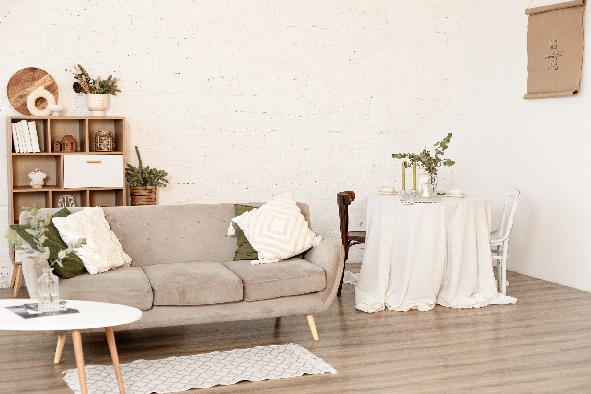 Убираем диван, стол, ставим стол и новая фотозона готова для вас.