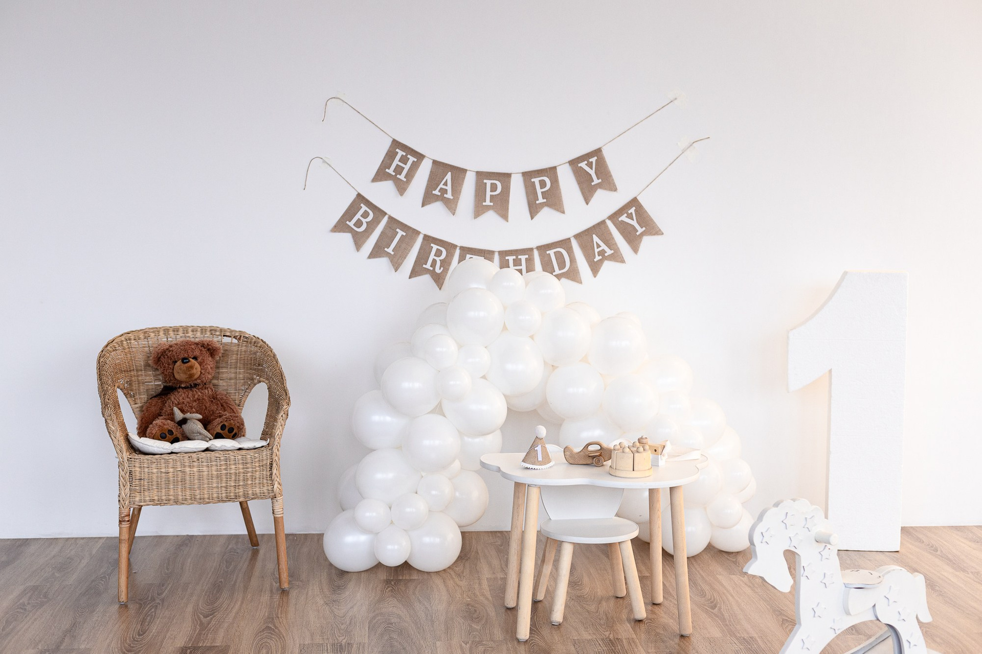 В детской фотозоне весь реквизит, что на фото — без доплат. Шары тоже. Цифры от 1 до 4.