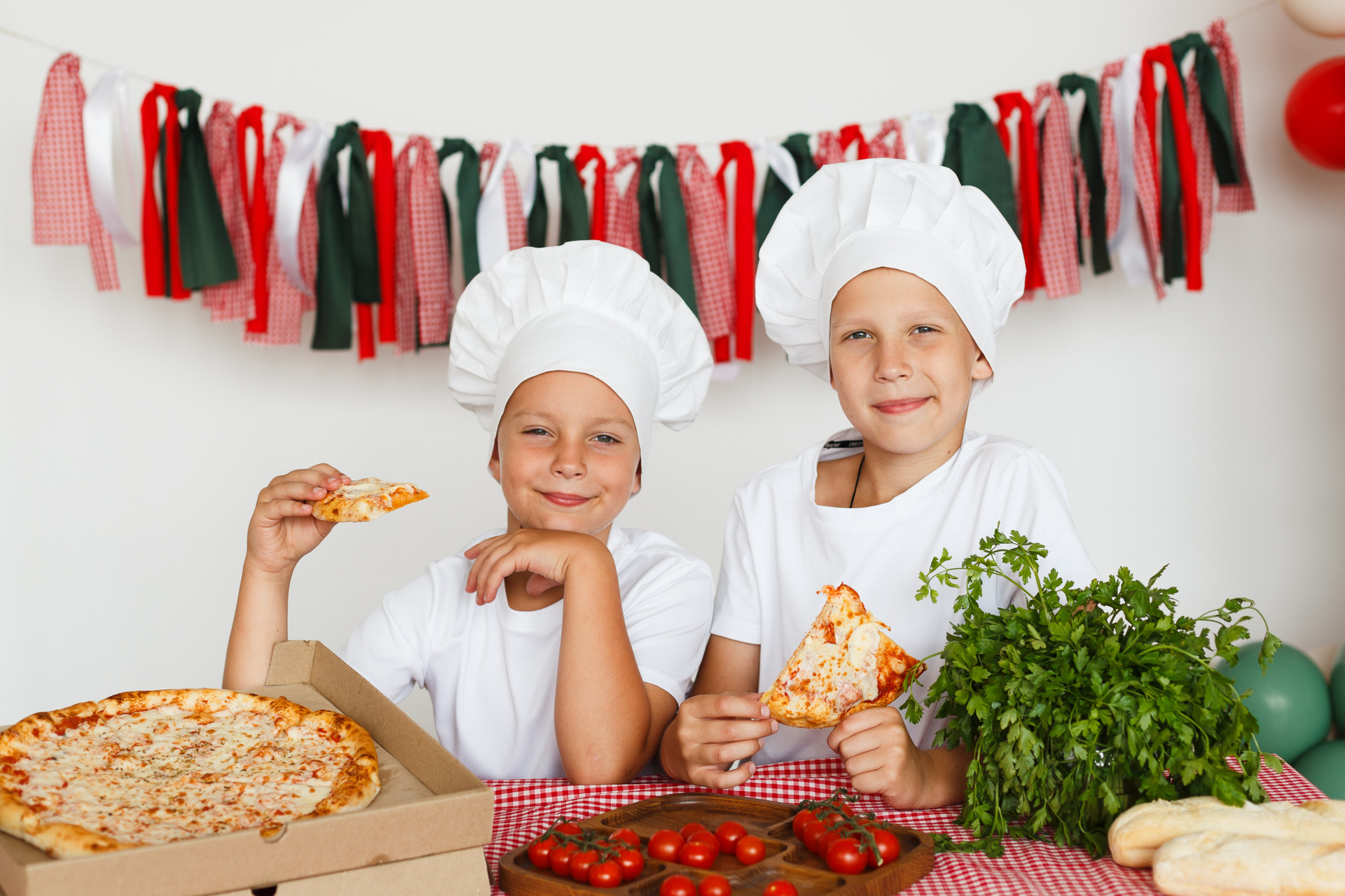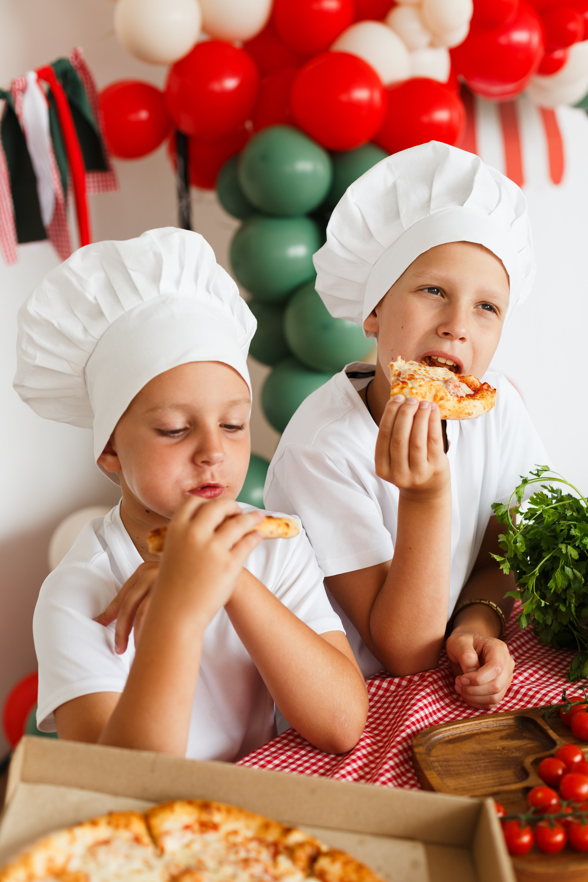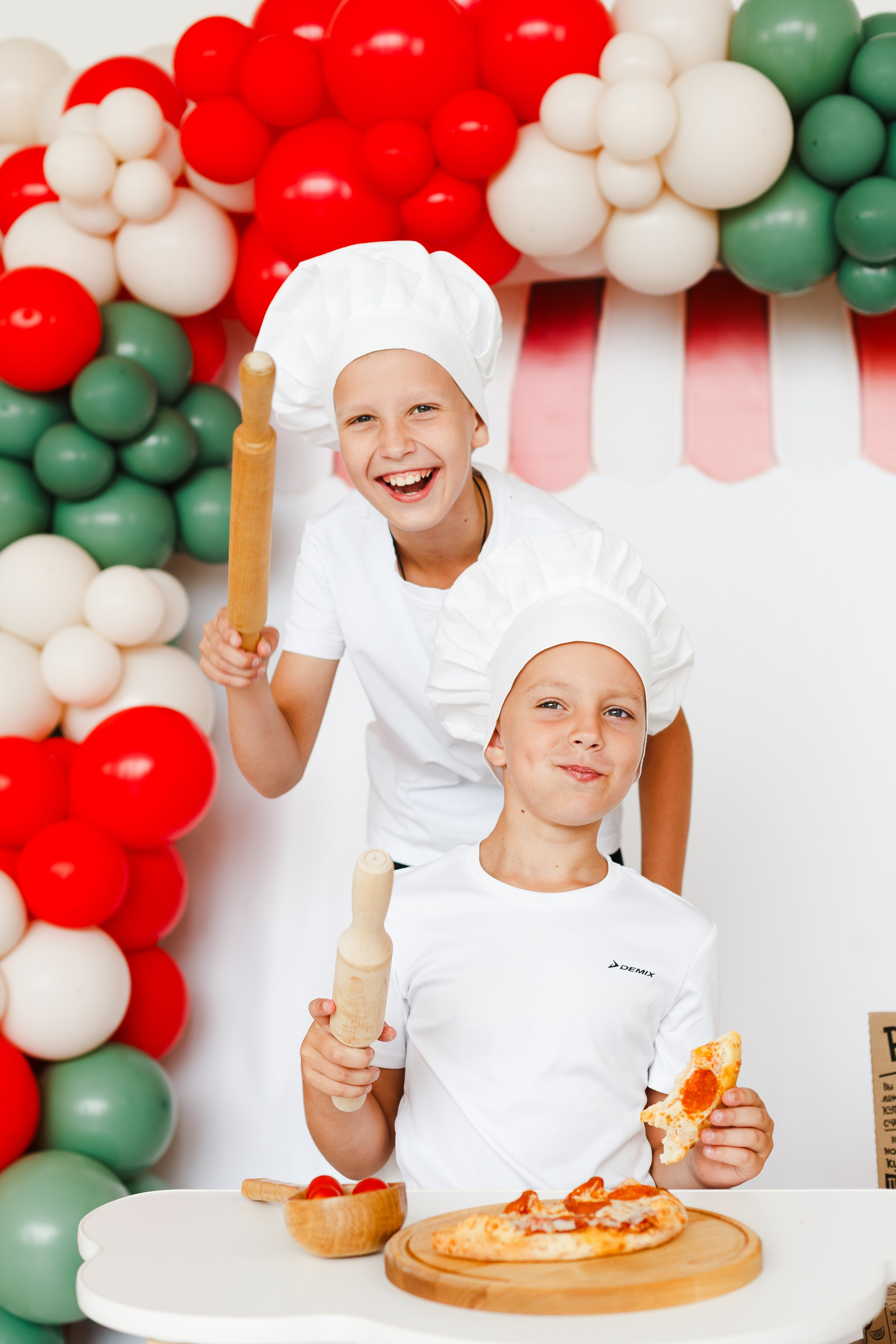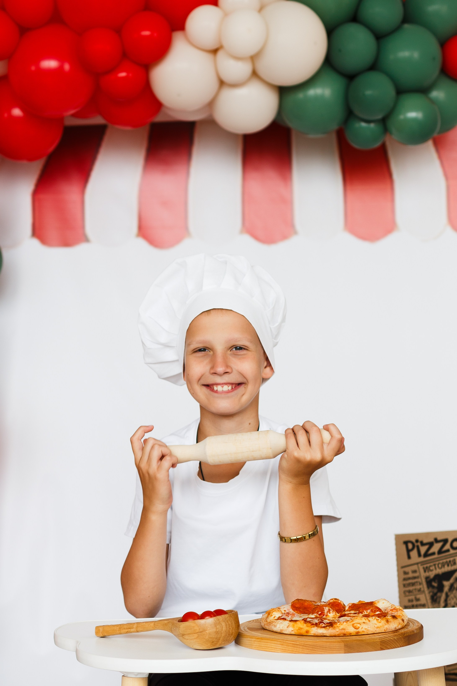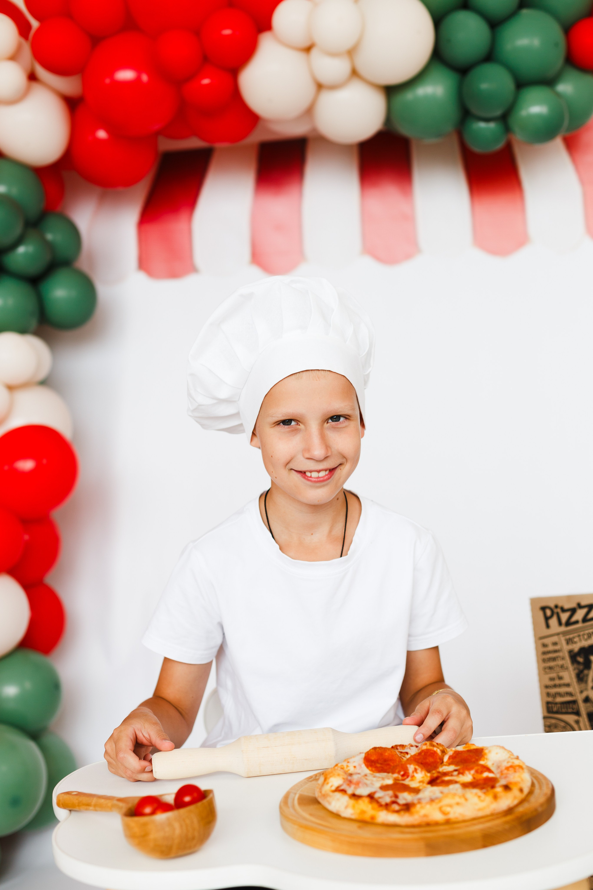 Пиццу, которую можно кушать, нужно будет привести с собой по вашему вкусу. На фото у нас размер пиццы 20 см.